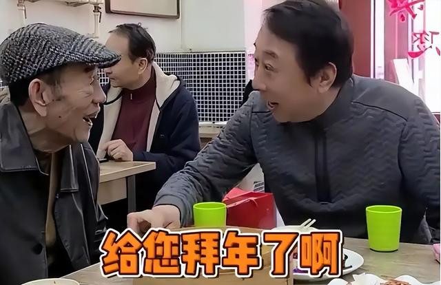 店里热气腾腾,老人吃得开心,冯巩频频敬茶。